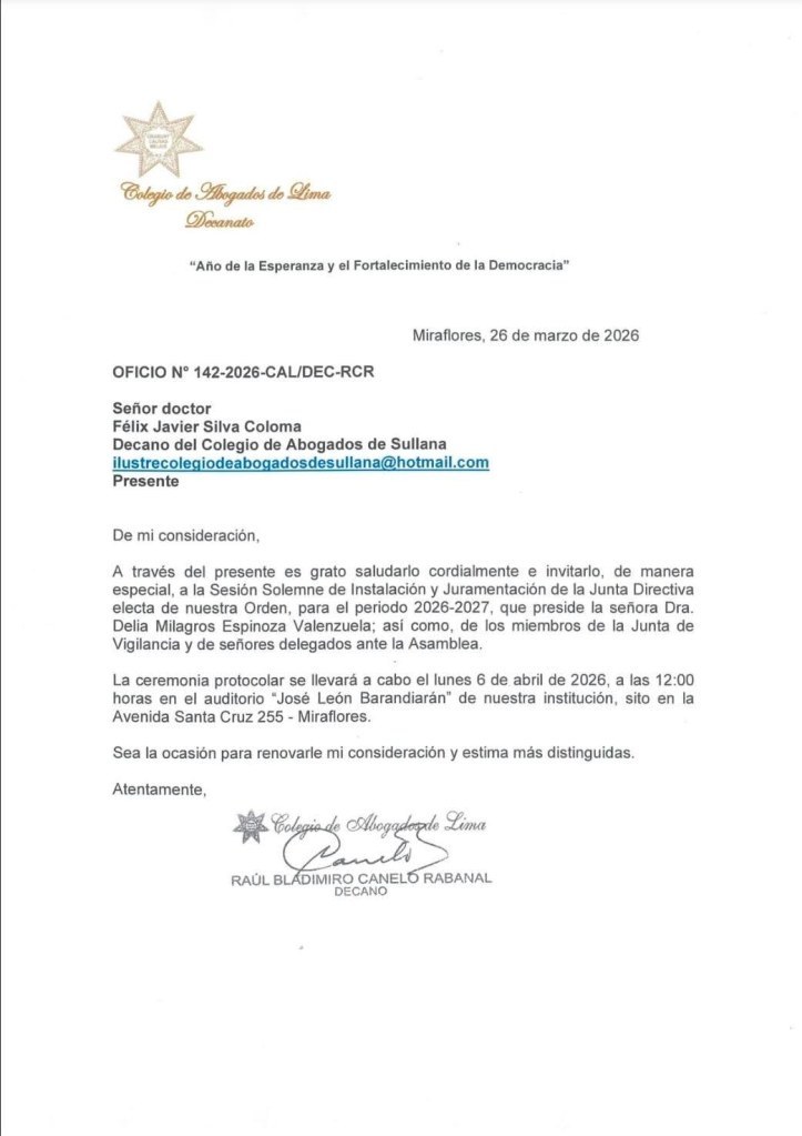 Un agradecimiento especial al Alcalde de Bellavista Sr. Hildebrando Crisanto Vilela por el apoyo recibido para la realización de la Revista Digital del Ilustre Colegio de Abogados de Sullana.